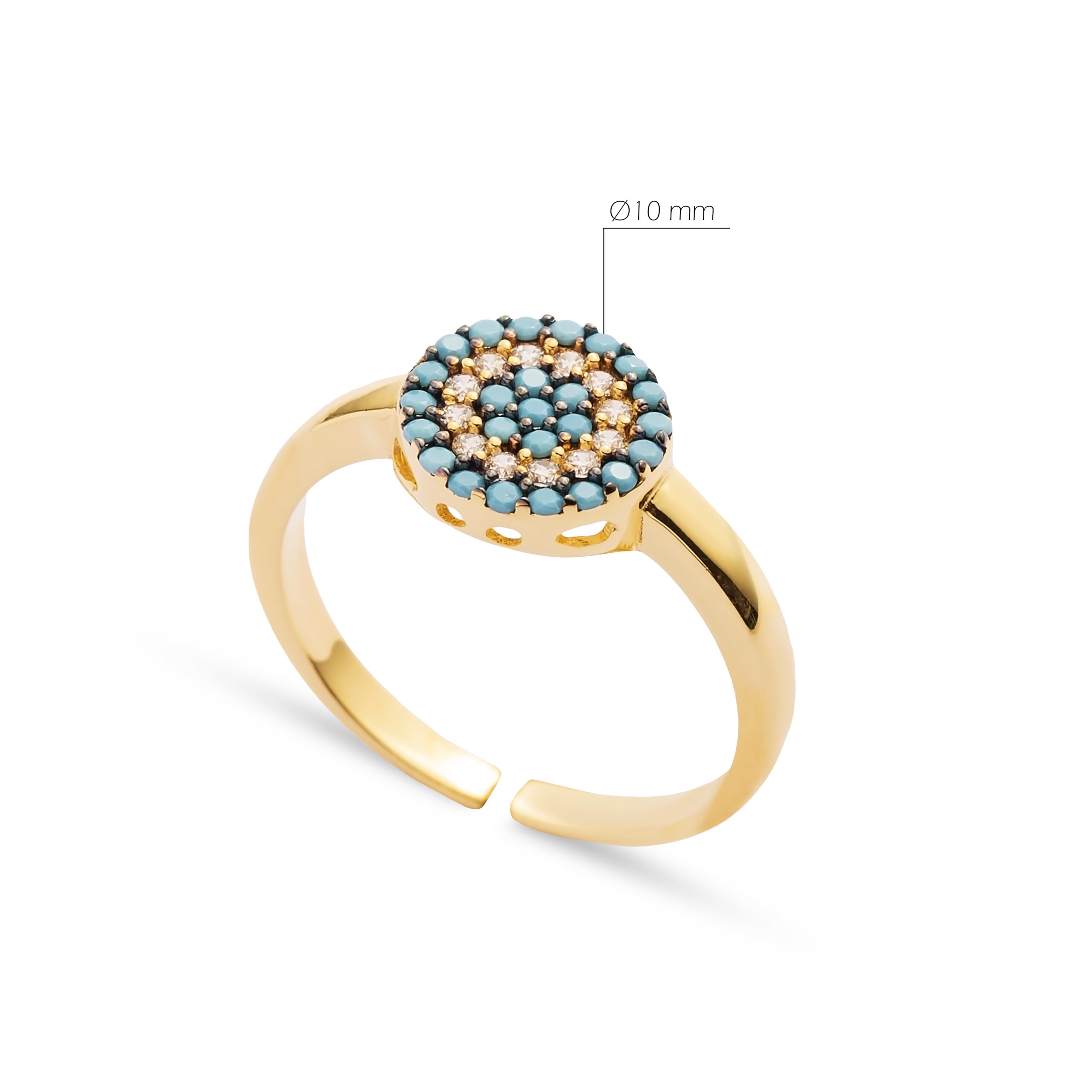 La Bague Halé, en argent 925 doré or 16K, revisite le Nazar ancestral dans un pavage turquoise vibrant.
