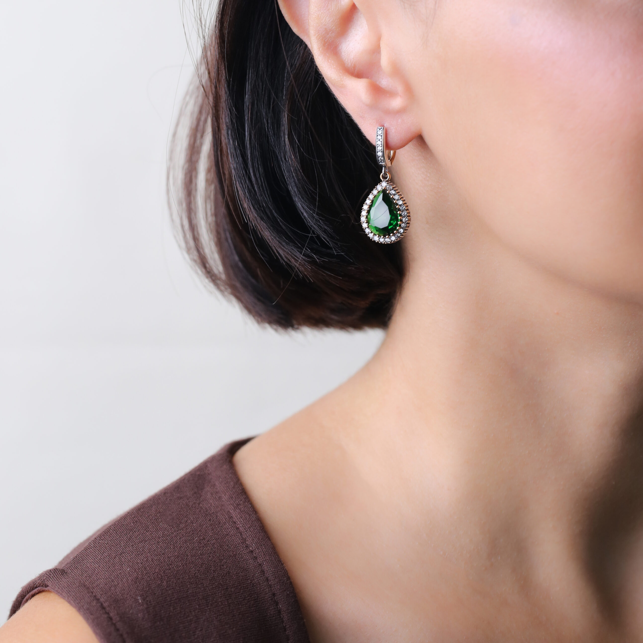 Le vert profond du zircon est historiquement associé à la sérénité, la sagesse et la prospérité dans la culture ottomane. Il évoque l’équilibre du cœur et la renaissance spirituelle. En Turquie, le vert est aussi la couleur du renouveau et de la bénédiction, souvent utilisé dans les bijoux pour attirer chance et stabilité. Porter ces boucles, c’est s’entourer d’une énergie apaisante et noble, reflet de la force féminine et de la beauté intérieure.