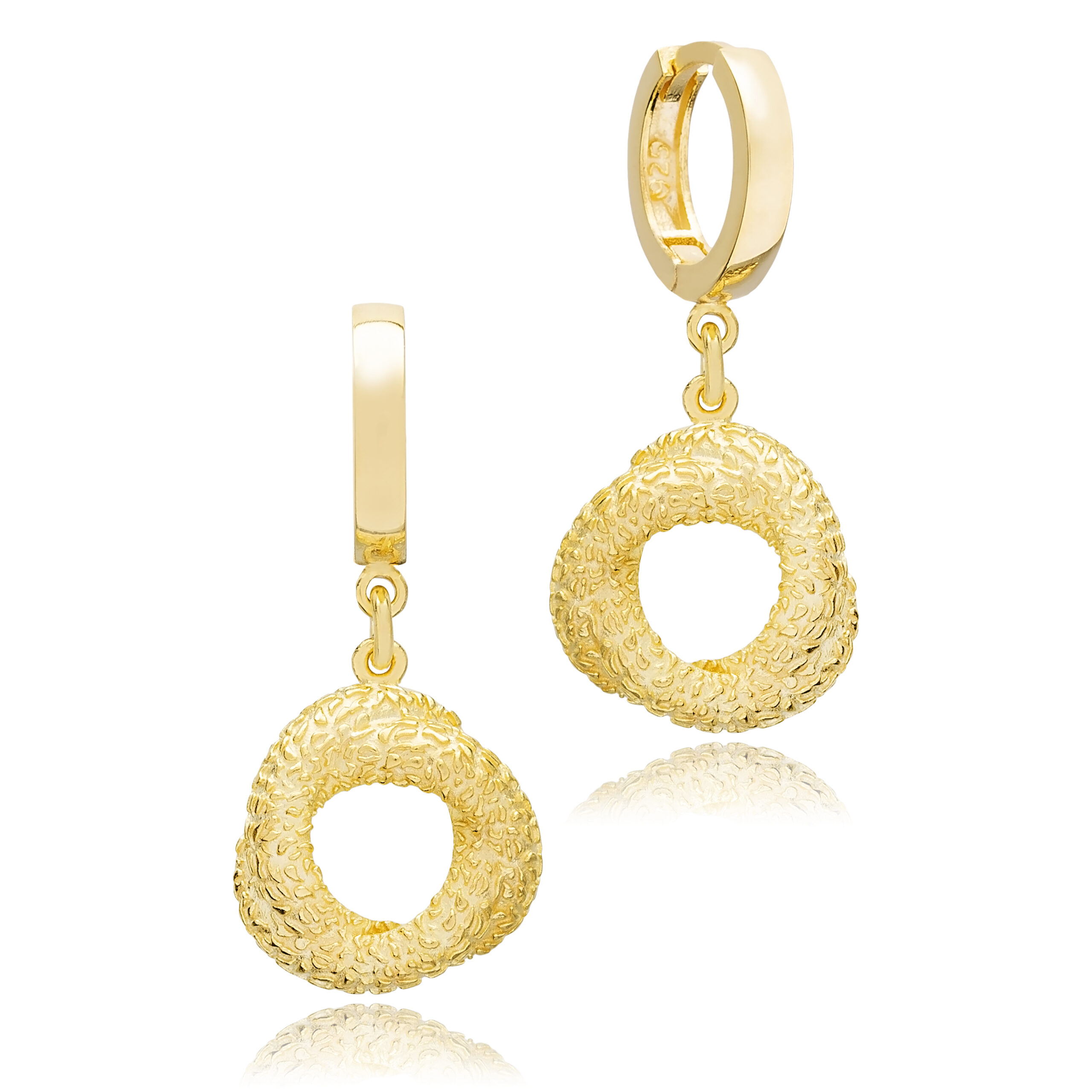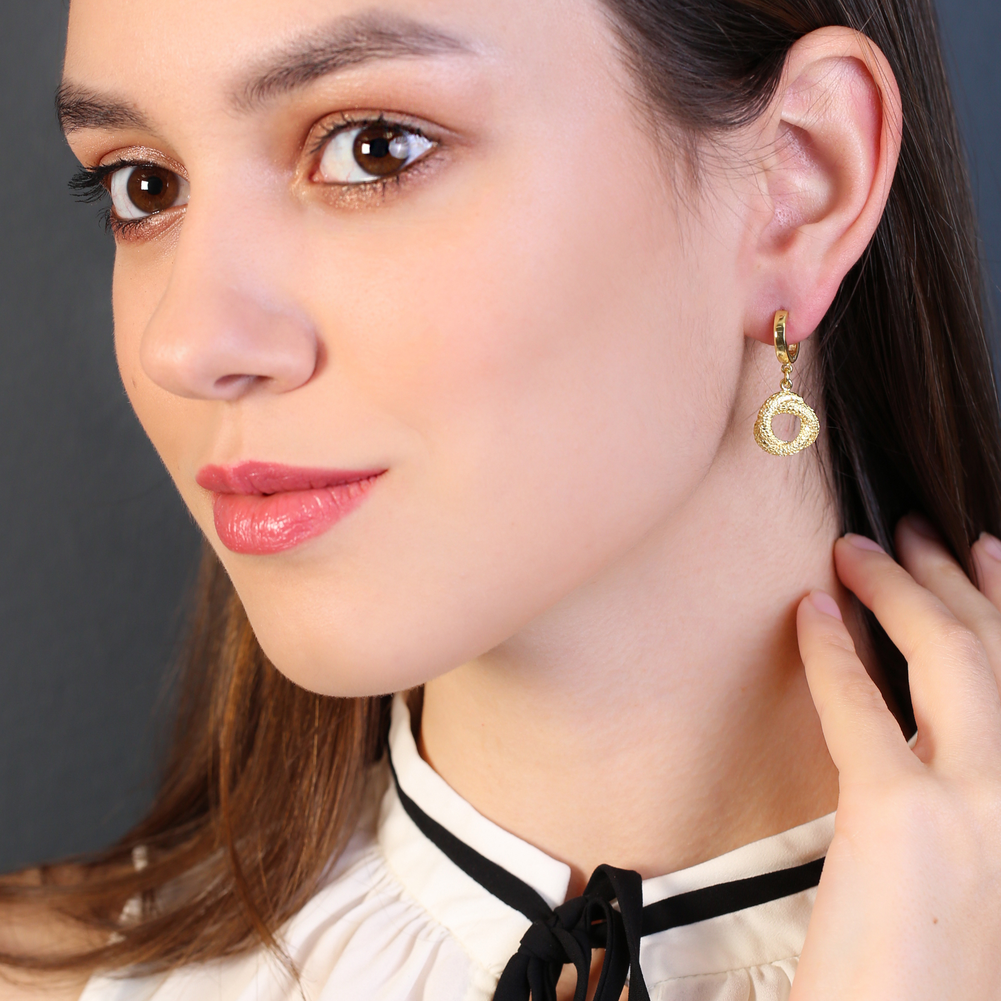 Les Boucles Corde d’Or, en argent 925 doré or 16K, dévoilent un pendentif torsadé texturé gravé à la main.