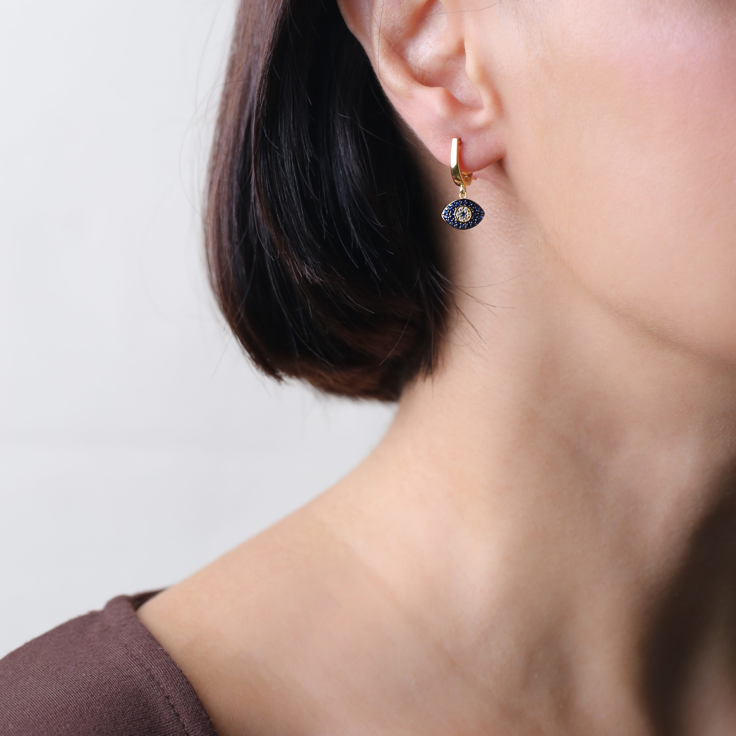 Les Boucles Nazar d’Azur en argent 925 doré or 16K réinventent le talisman Nazar dans une version élégante et légère.