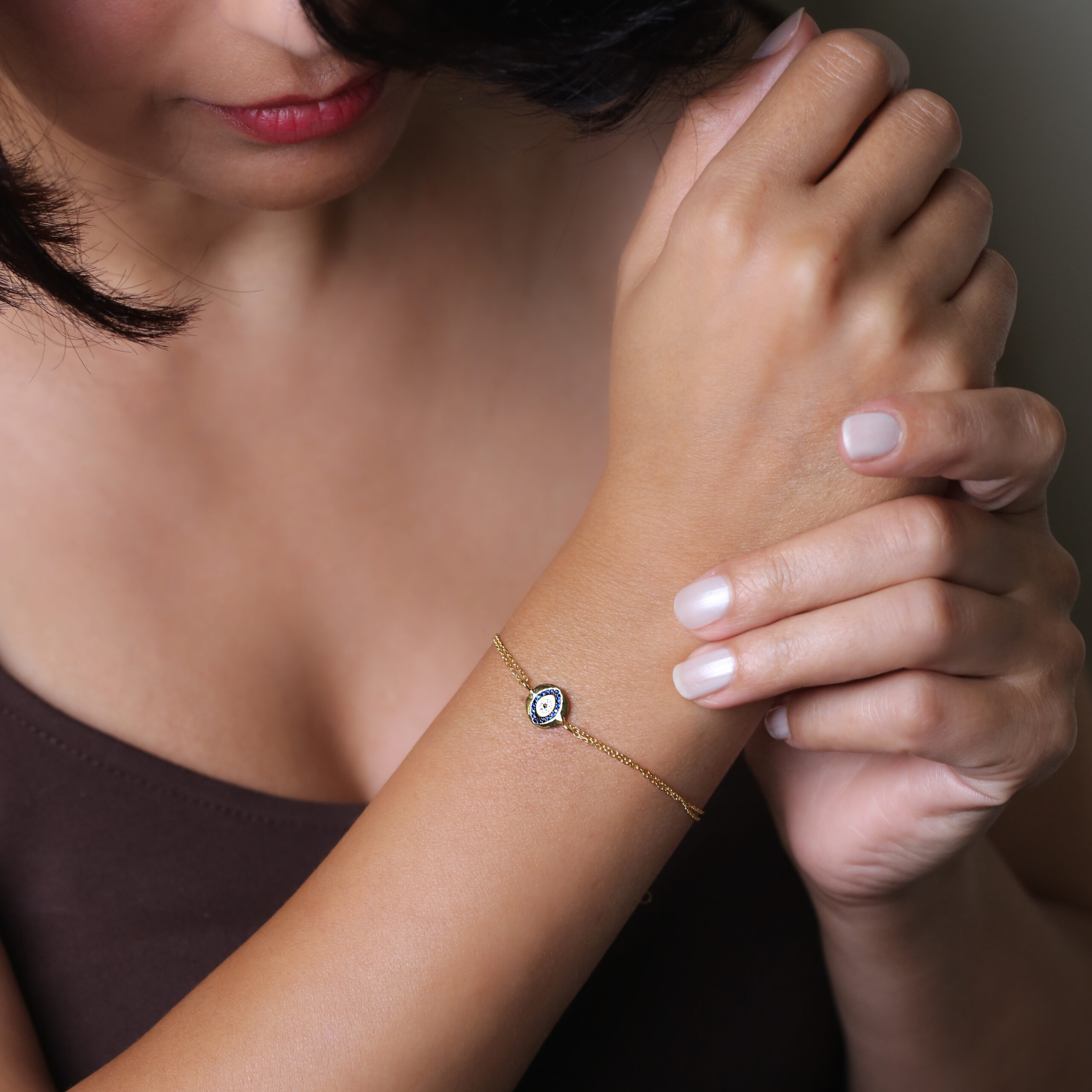 La pupille centrale absorbe les intentions négatives avant qu’elles n’atteignent votre aura. Le bleu saphir en cercle repousse l’ombre et restaure la paix intérieure. Les éclats clairs qui l’entourent créent une barrière lumineuse qui transforme la jalousie en lumière. Associé au poignet, lieu du mouvement et de l’action, ce Nazar devient un gardien actif, présent à chaque geste.