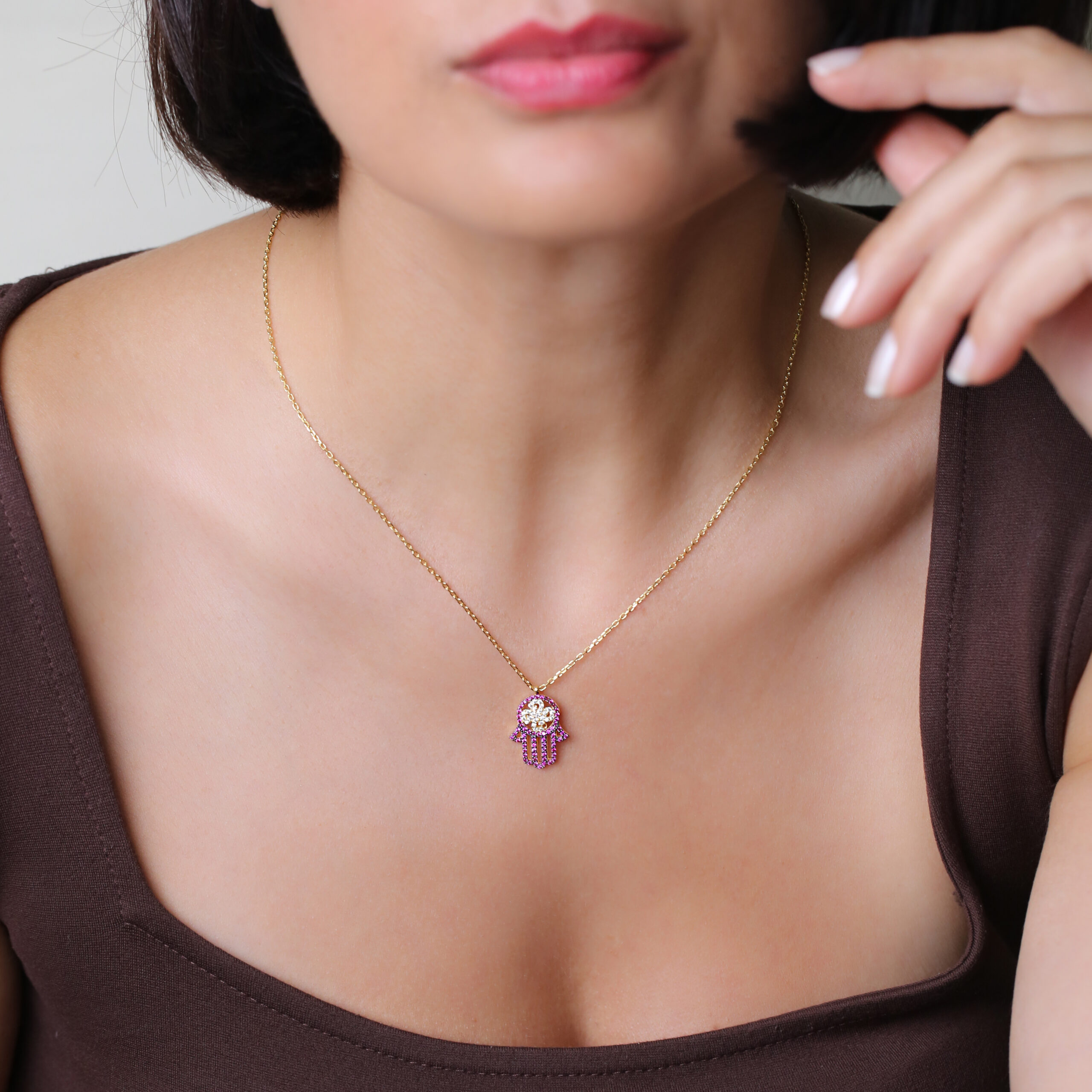Dans l’héritage méditerranéen, la Hamsa est portée comme un talisman protecteur destiné à guider et apaiser. Symbole transmis depuis des siècles, elle est associée aux bénédictions offertes au foyer et aux voyages. En Anatolie, ce motif est souvent lié à la bienveillance divine, à la protection des intentions et à l’ouverture du chemin devant soi. Le collier perpétue cette tradition en s’inspirant des mains sculptées des artisans d’Istanbul, où le métal précieux rencontre les codes spirituels anciens.