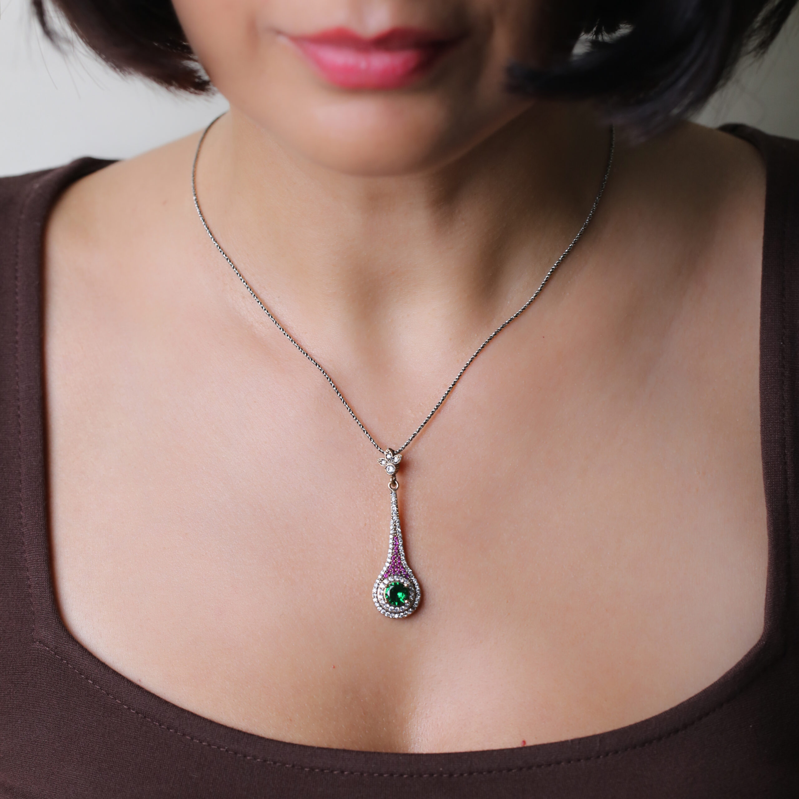 - Pierres principales : Zircons verts, rouges et clairs (oxydes de zirconium)