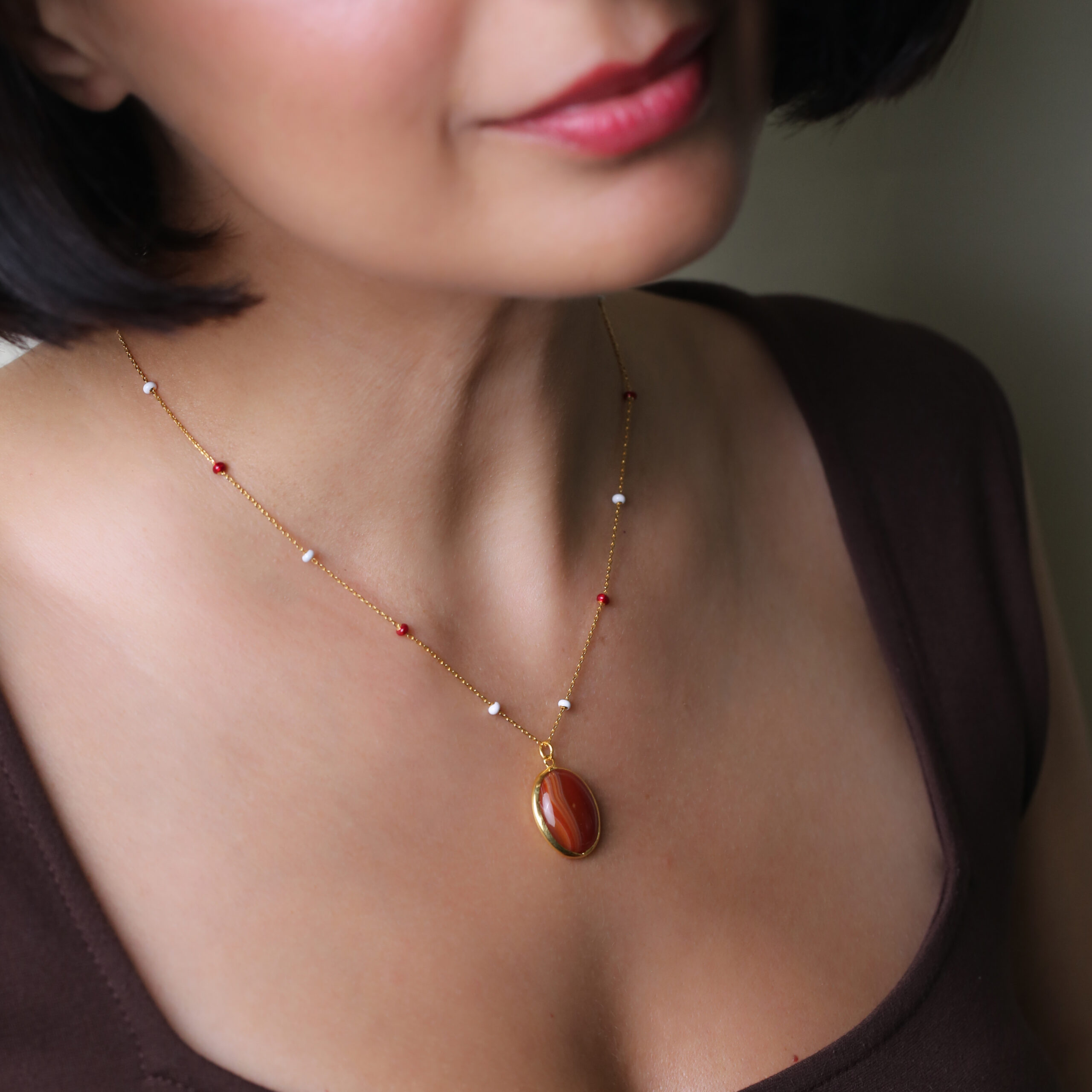 Porté chaque matin, ce collier devient une armure discrète. Sentez la chaleur subtile de la pierre contre votre peau, laissez-la vous rappeler votre force intérieure et votre capacité à avancer avec courage.