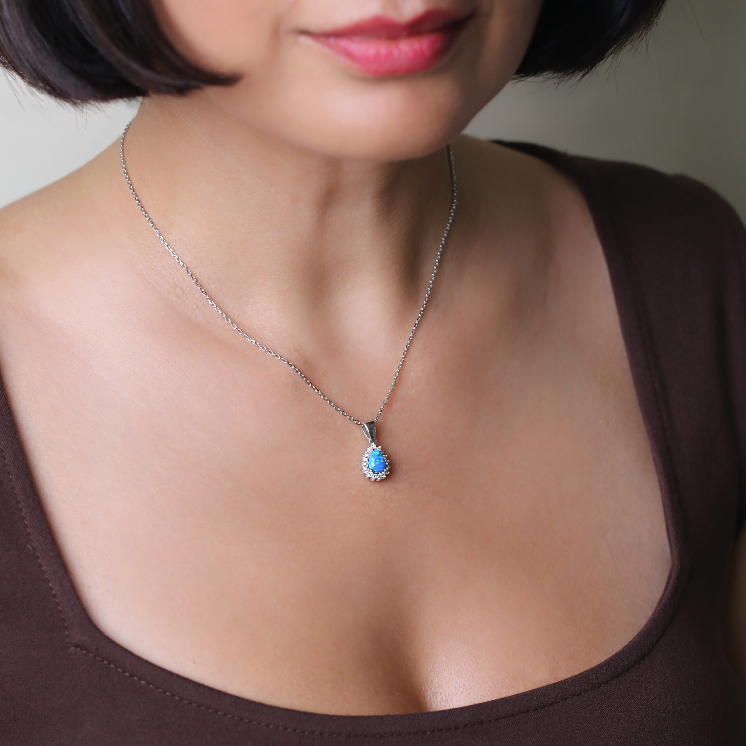 Le Collier Deniz, orné d’une opale bleu véritable en son centre, se pose près du cœur comme une onde apaisante.